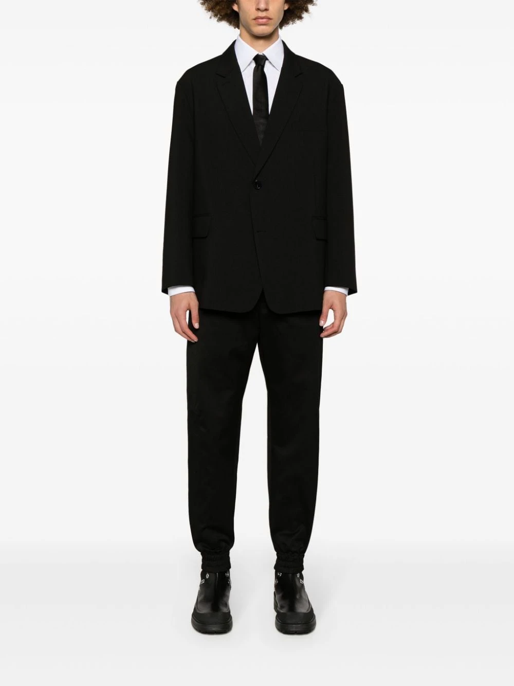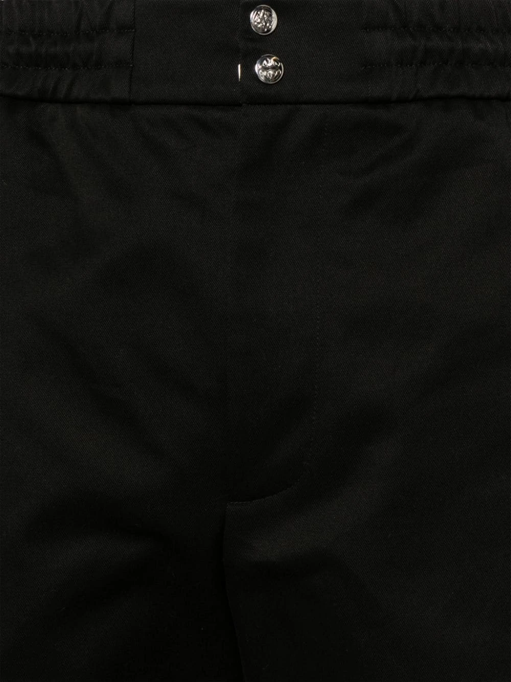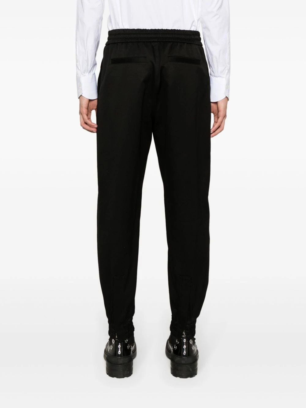 black cotton twill weave logo-engraved silver-tone hardware tapered leg mid-rise hook and zip fly fastening elasticated waistband internal drawstring fastening waist two side slit pockets two rear welt pockets elasticated ankles ankle zips Organic cotton cargo trousers This piece fits true to size. We recommend you get your regular size. Model is 1,84m / 6ft 1in wearing size 48 (IT)Item #: