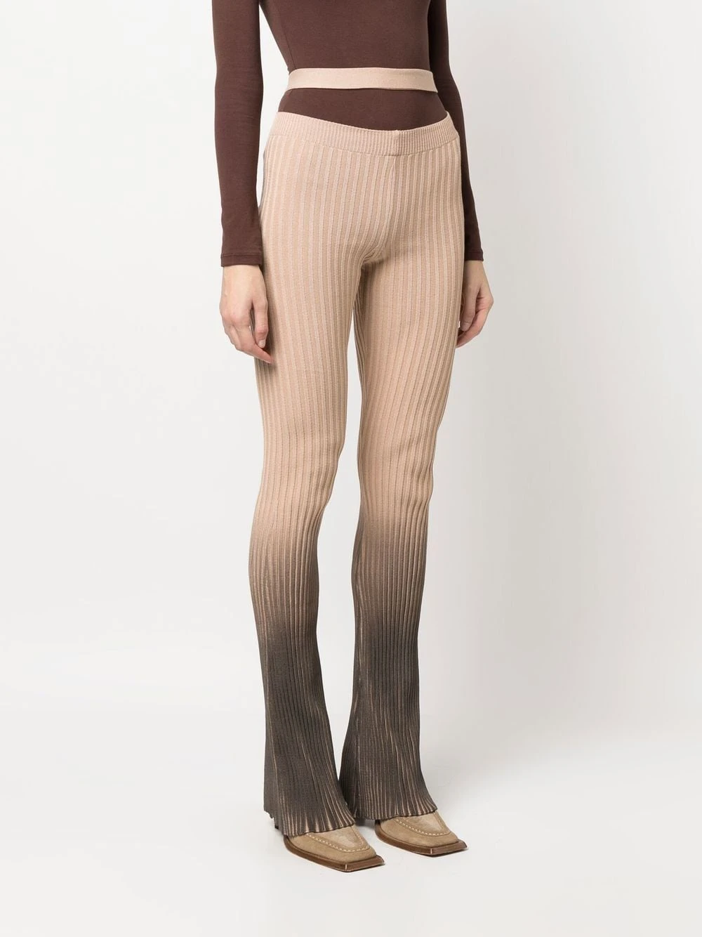 ribbed flared trousers from ANDREADAMO featuring brown, stretch-design, ombré effect, fine ribbed, high-waisted, cut-out detailing and flared. Printed cut-out trousers This piece fits true to size. We recommend you get your regular size. Model is 1,75m / 5ft 8in wearing size SItem #: