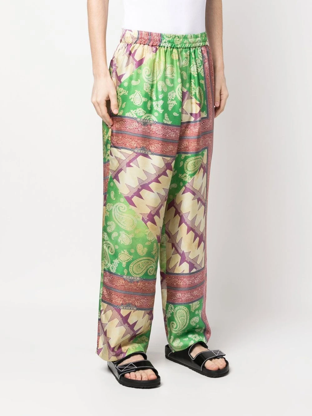 paisley-print silk trousers from ARIES featuring bright green, multicolour, silk, paisley print, mix print, wide leg, elasticated waistband and rear patch pocket. Printed silk trousers This piece fits true to size. We recommend you get your regular size. Model is 1,84m / 6ft 1in wearing size 32 (WAIST CM)Item #:
