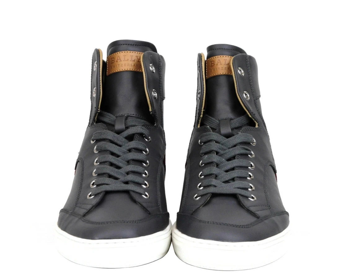 Bally Men’s Dark Grey Calf Leather Hi-top Sneaker With Red Beige