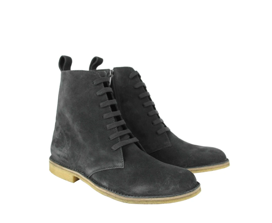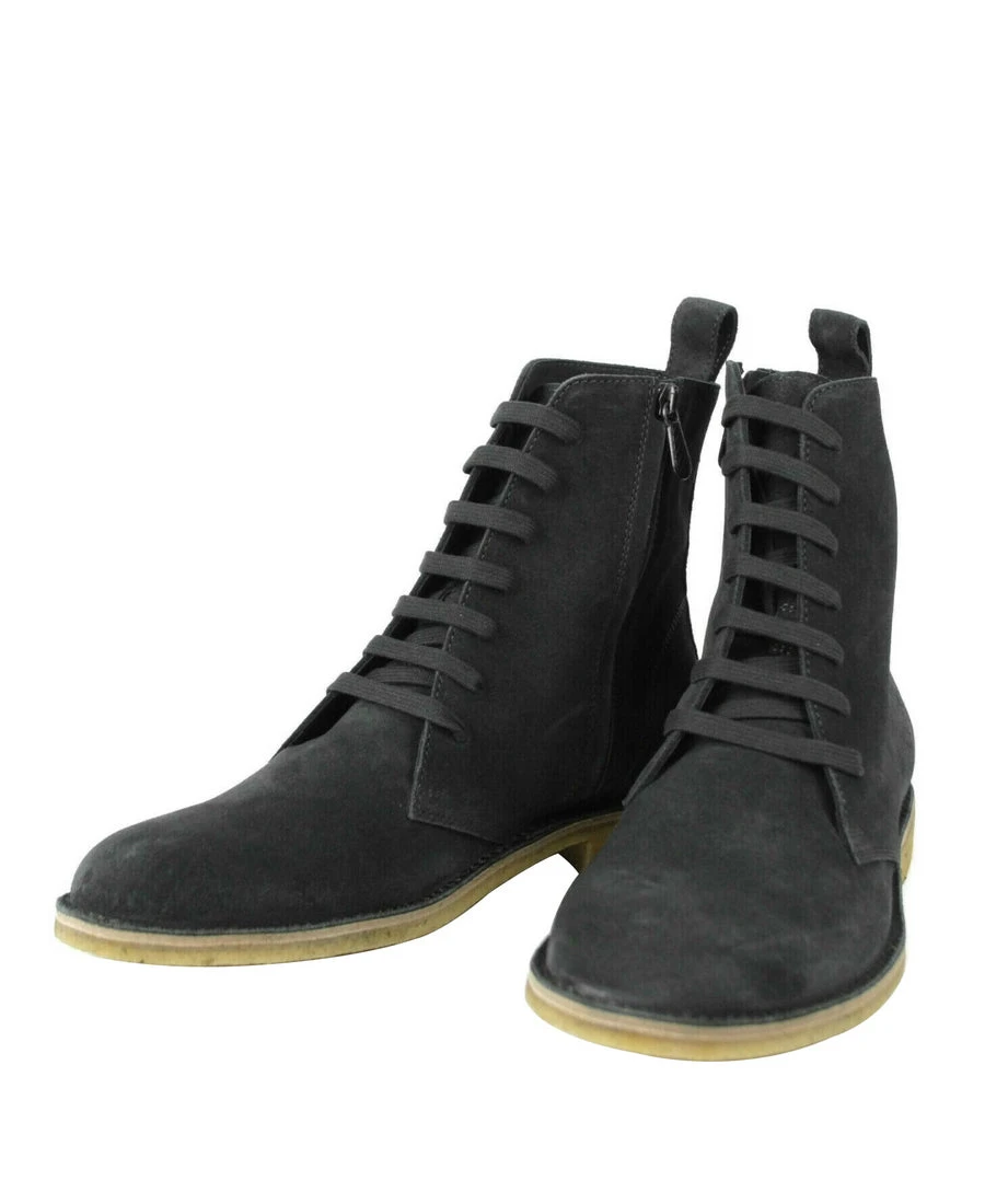 Bottega Veneta Men’s Dark Gray Suede Side Zipper Lace-Up Boot 427383 2015