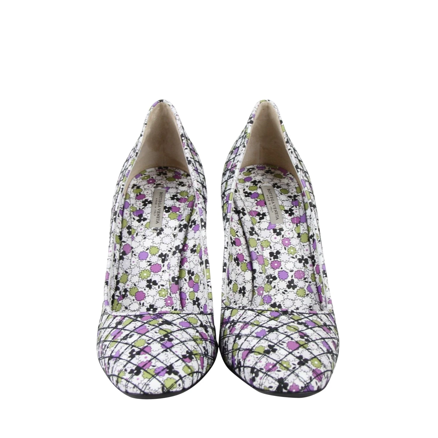 Bottega Veneta Women’s Green / Purple Floral Leather Heels (39 EU / 9 US)