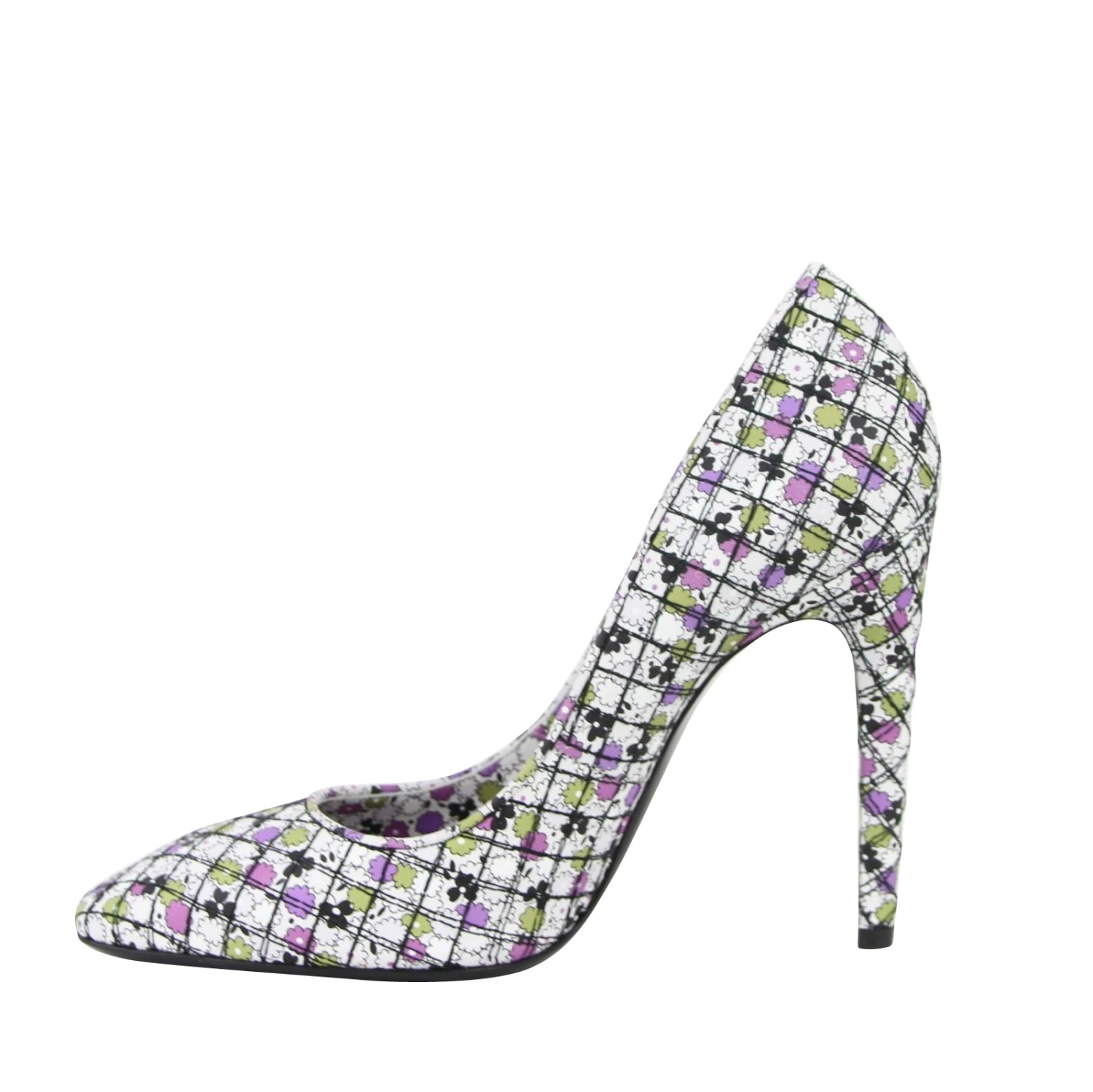 - Made of leather, Checkered stitches; Heel Type:Stiletto