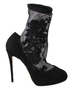 Gorgeous brand new with tags, 100% Authentic Dolce & Gabbana black stretch socks Roses embroidery stilettos booties shoes.