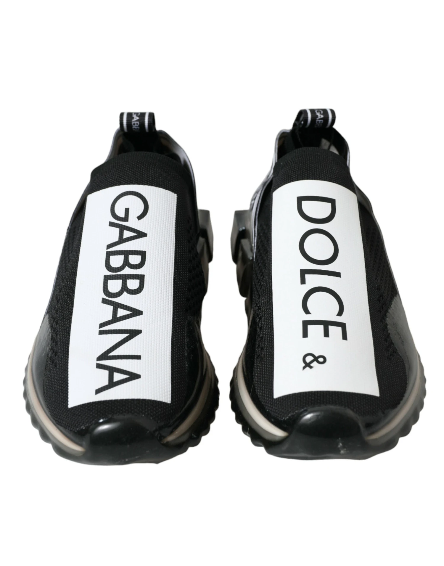 Gorgeous brand new with tags, 100% Authentic Dolce & Gabbana Black and white ‘Sorrento’ sneakers. Decorated with a logo print in white and black. Fabric pull strap sewn-in at the back. Black decorative rubber sole.