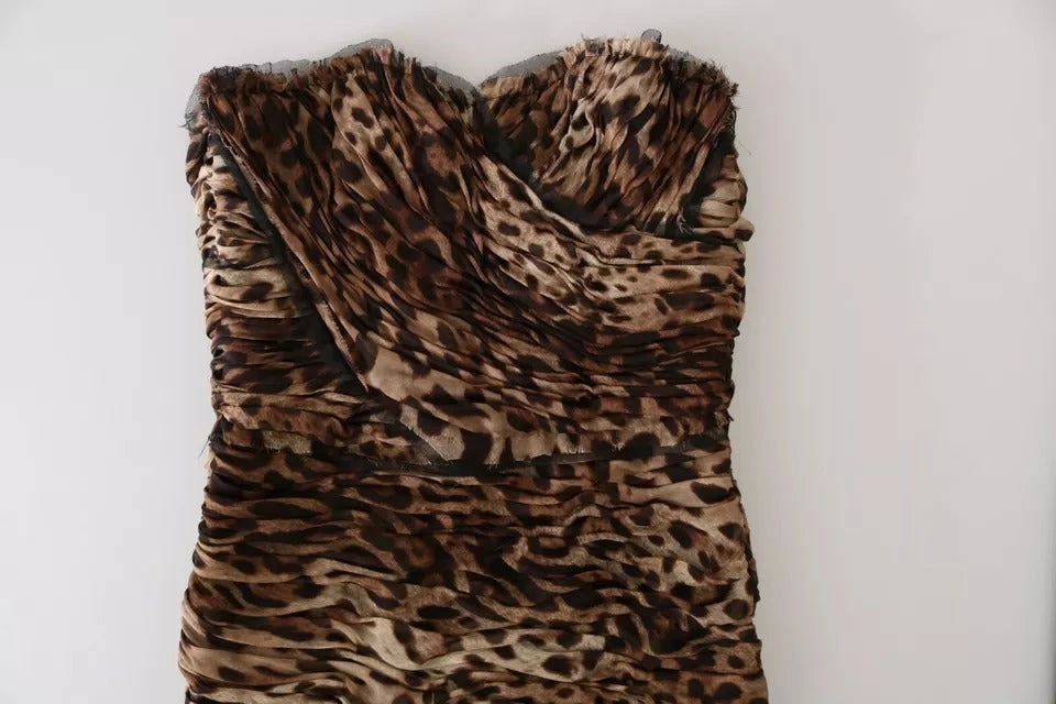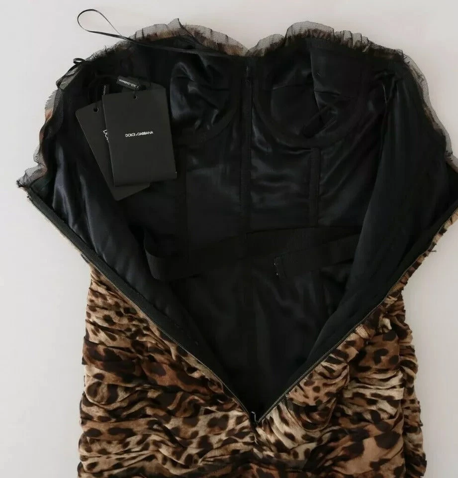 Gorgeous brand new with tags, 100% Authentic Dolce & Gabbana leopard print ruched silk chiffon gown.