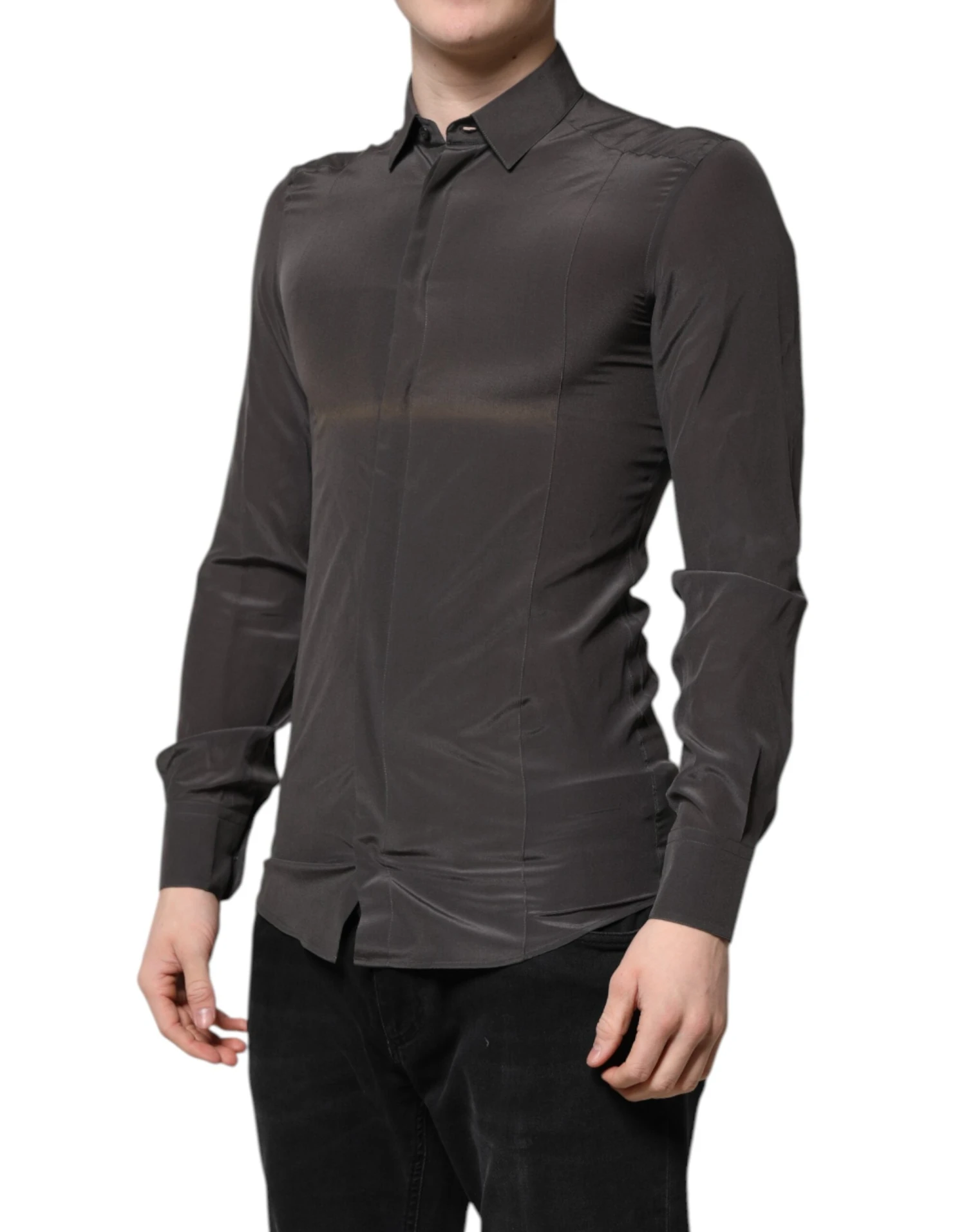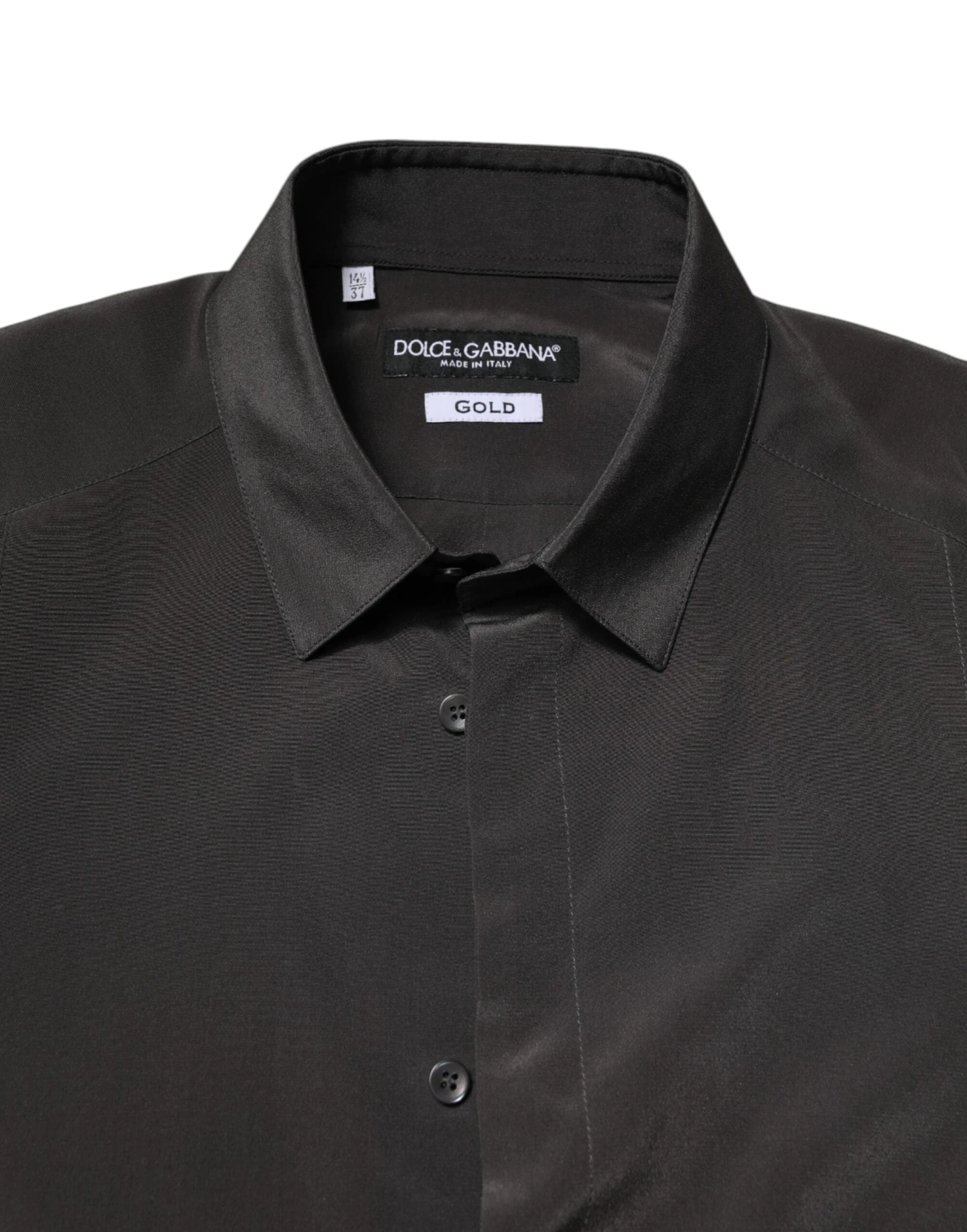 Gorgeous brand new with tags 100% Authentic DOLCE & GABBANA GOLD silk dress shirt. The model has a classic neck, long sleeves and a button down closure.