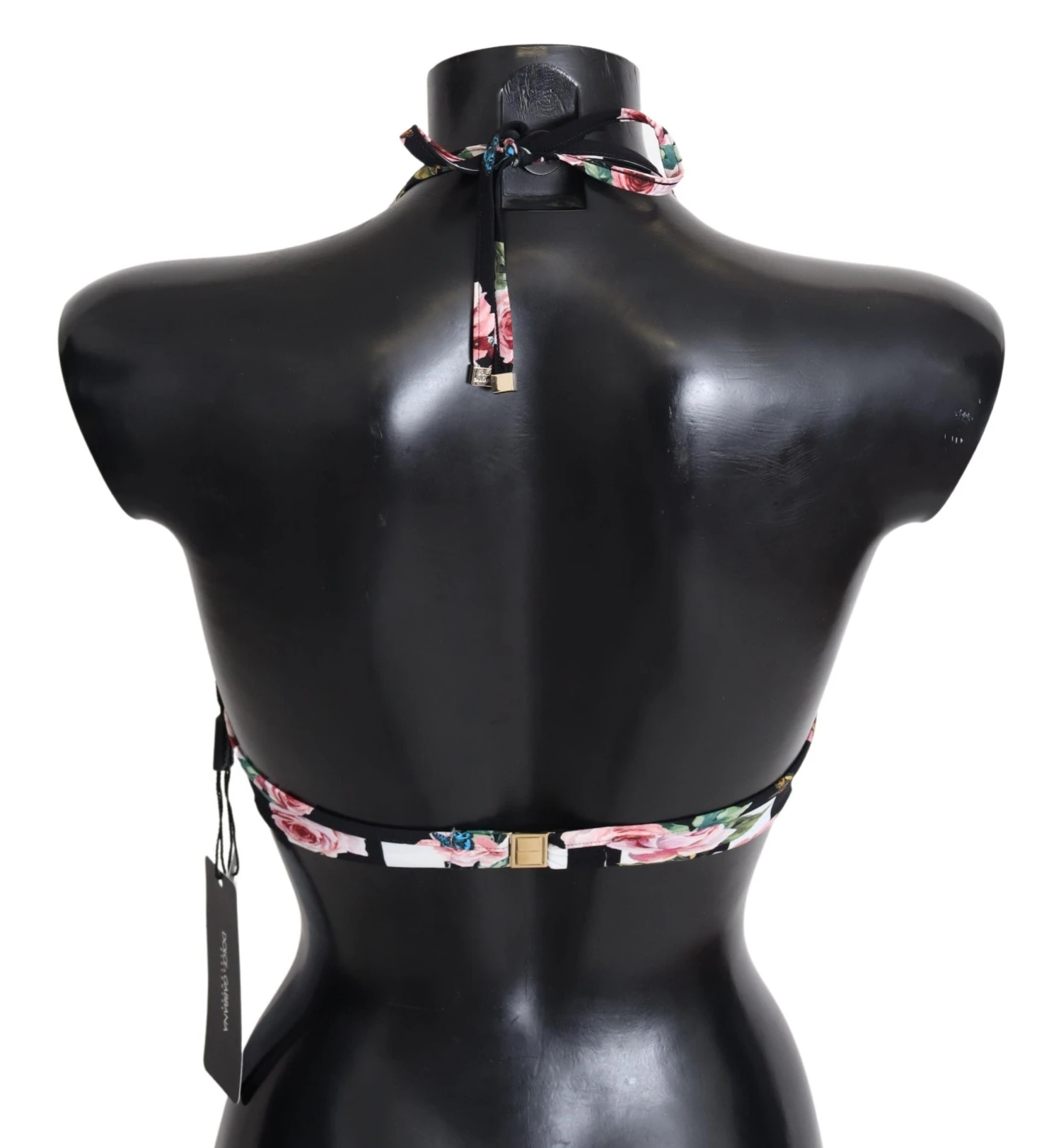 Gorgeous brand new with tags, 100% Authentic Dolce & Gabbana bikini top with rose print made of lightweight elastic material. Fastened at the back with a decorative logo-embossed closure, tie fastening at the neck.
