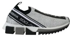 Gorgeous, brand new with tags 100% Authentic Dolce & Gabbana Silver rhinestones sorrento sneakers. Featuring a round toe, a slip-on style, a pull tab at the rear and a ridged rubber sole.