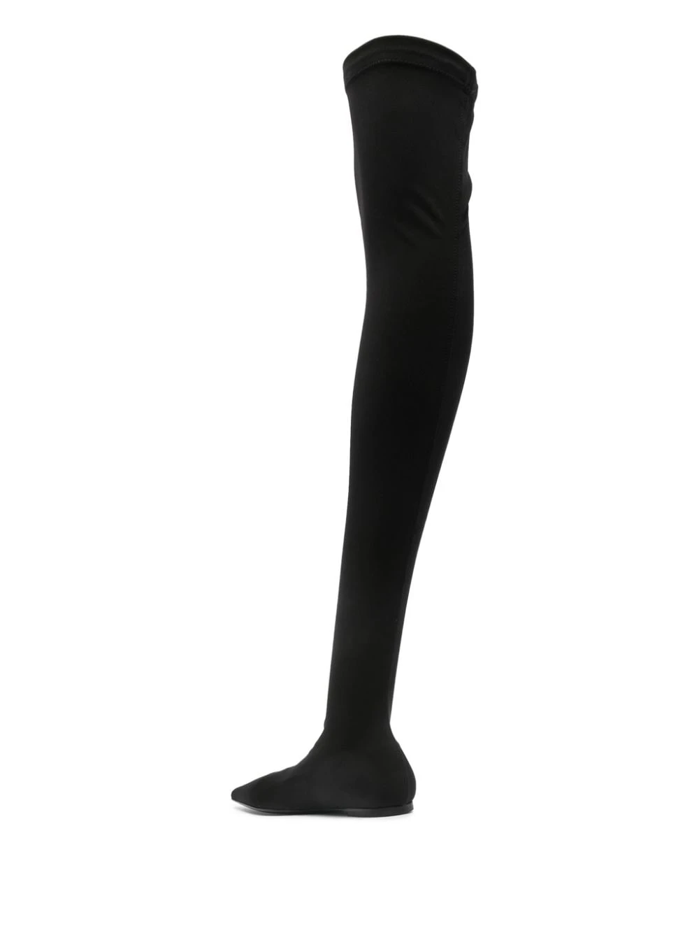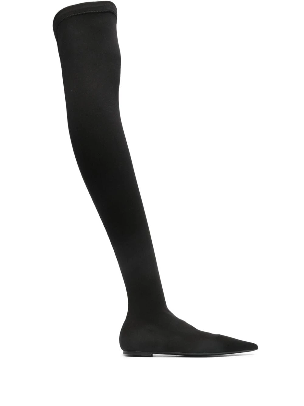 black stretch-jersey pointed toe thigh-length branded leather insole flat leather sole pull-on style Stretch jersey over-the-knee boots Heel 0,4 in / 1 cmItem #: