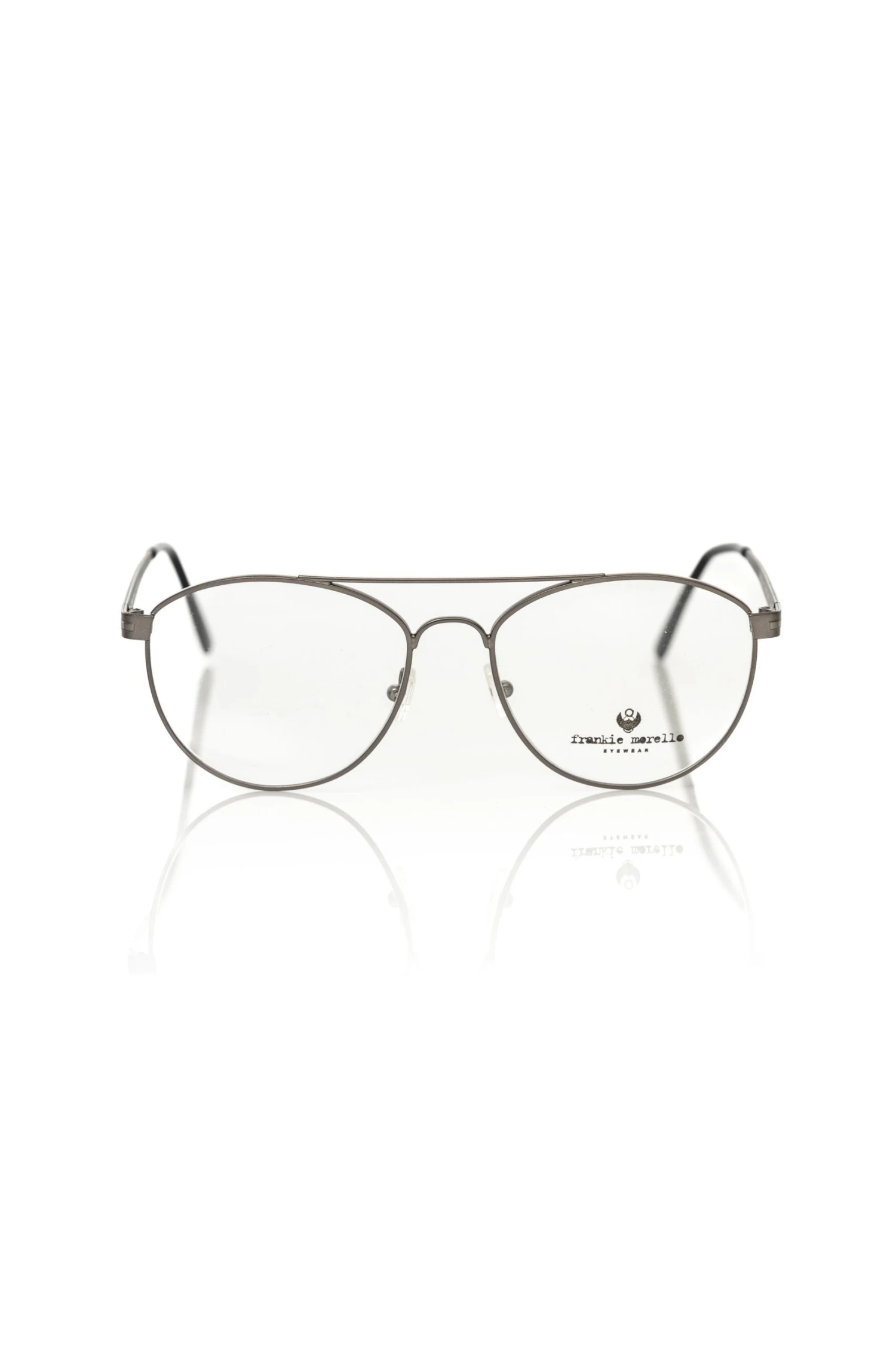 Elevate your vision with the impeccable craftsmanship of Frankie Morello’s Aviator Model Eyeglasses. Boasting a sleek metal frame with a gun barrel shaft, these spectacles exude class with a bold gray hue that sets the trend. Crafted with precision in Italy, they redefine luxury eyewear for the discerning individual. Perfect for adding a touch of sophistication to any ensemble.