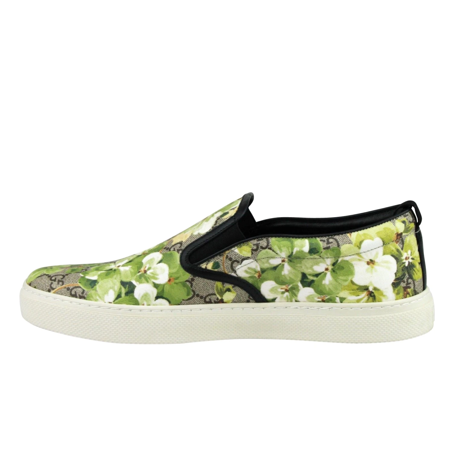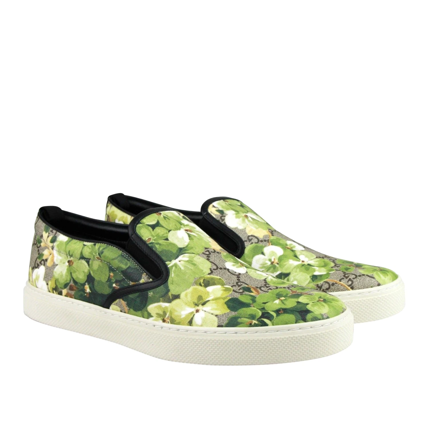 Gucci Men’s Bloom Flower Print Supreme GG Green Canvas Slip Sneakers 407362 8961