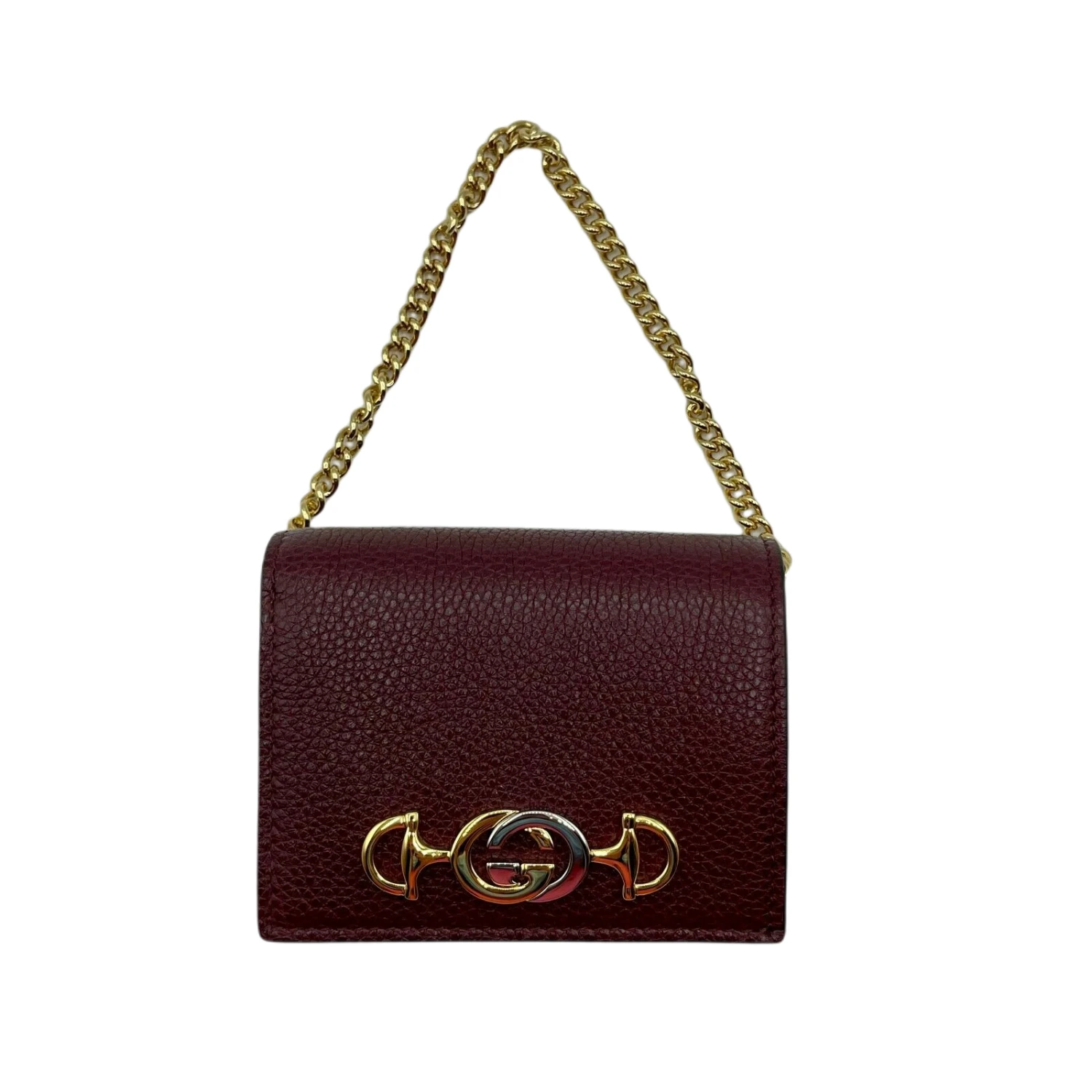 Gucci Zumi Burgundy Leather Gold Chain Bi-Fold Mini Wallet