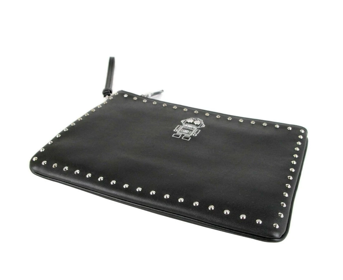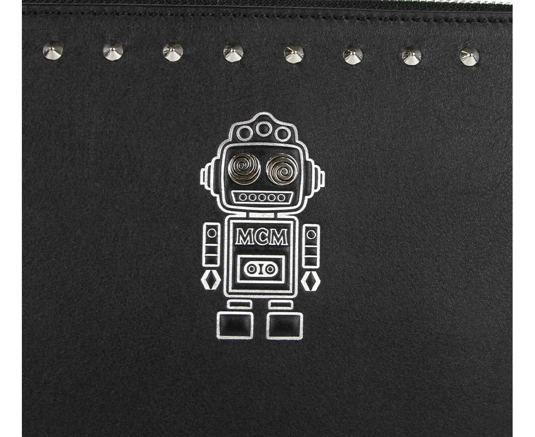 MCM Unisex Black Nappa Leather Studded Robert Wristlet Zip Pouch MZZ9SRO32BK001