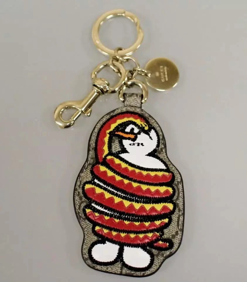 New GUCCI UNICEF GG Canvas/Leather Key Ring/Charm Snowman And Snake
