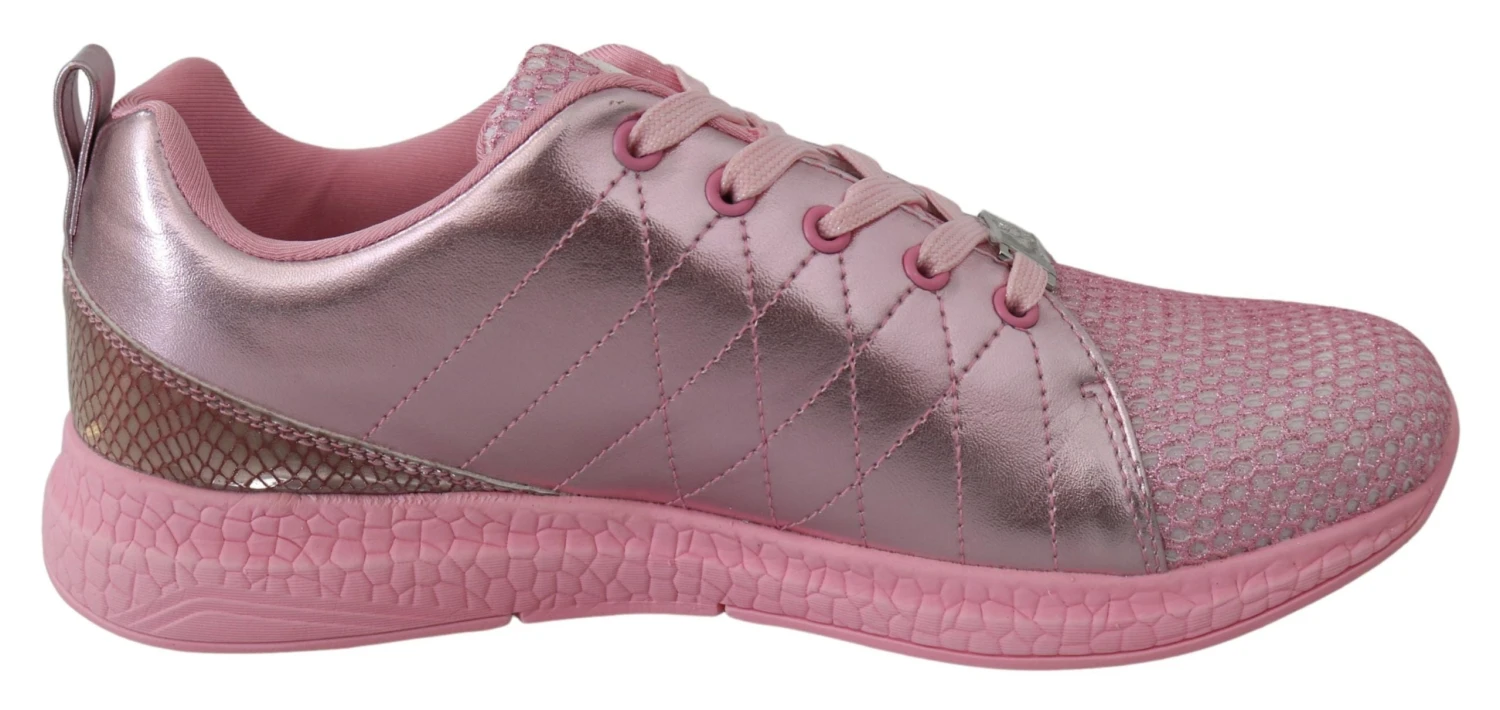 Step out in style with these stunning, new-with-tags Plein Sport Women’s Sneakers. Boasting high craftsmanship and exclusivity, the ‘Runner Gisella’ model is the perfect blend of fashion-forward design and athletic comfort. Featuring a beautiful Pink Blush hue, these shoes are crafted from premium polyester and set on a durable rubber sole for a steady grip. They come complete with original box and logo details, ensuring authenticity and a touch of luxury.