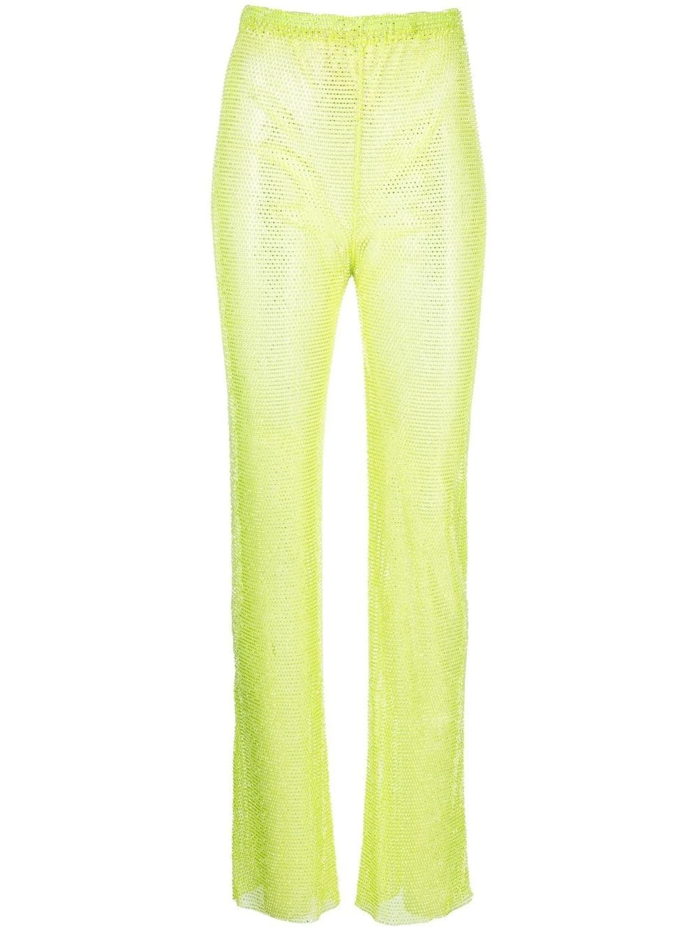 rhinestone-embellished straight trousers from Santa Brands featuring lime green, rhinestone embellishment, semi-sheer construction, elasticated waistband, high-waisted and straight leg. Sparkling trousers This piece fits true to size. We recommend you get your regular size. Model is 1,75m / 5ft 8in wearing size SItem #: