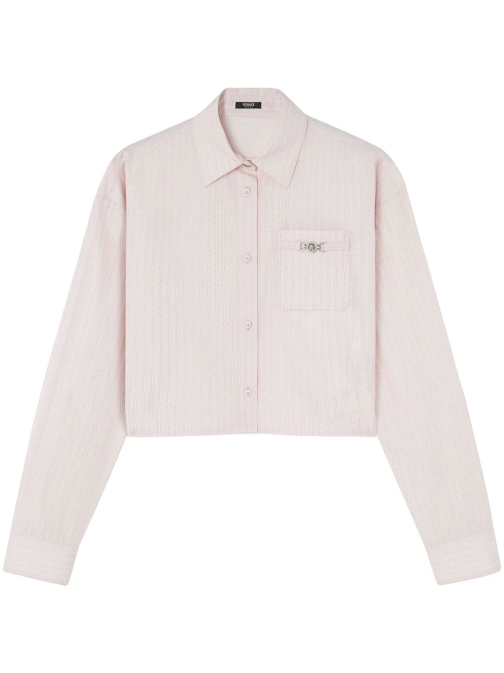 light pink front button fastening chest patch pocket Medusa Head motif button-down collar Pinstripe Chain cropped shirt This piece fits true to size. We recommend you get your regular size. Model is 1,75m / 5ft 8in wearing size 40 (IT)Item #: